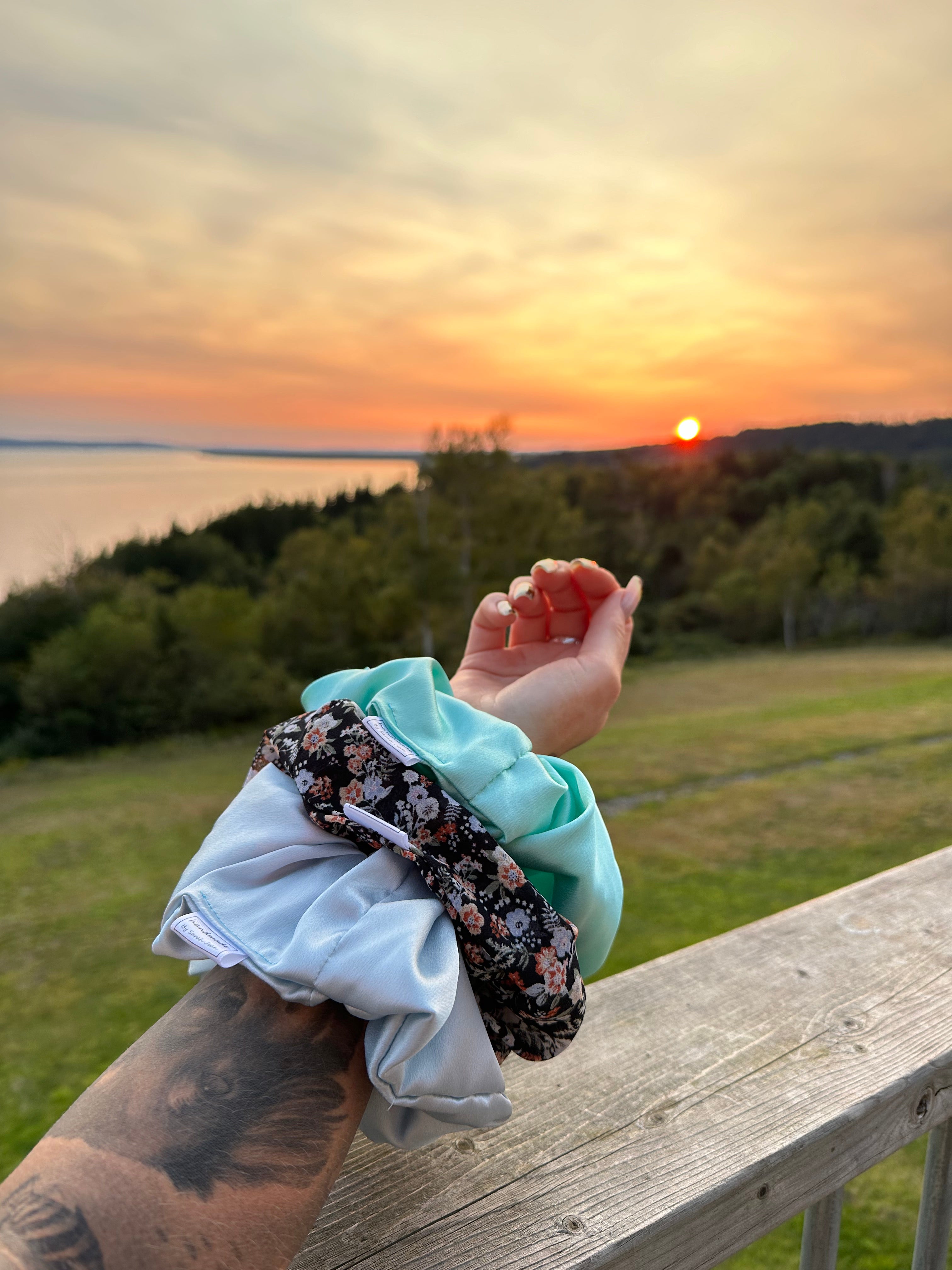 Made with soft elastic and generous fabric, these scrunchies wrap comfortably twice without pulling or causing damage. Their full shape stays visible, adding a subtle statement to any look.